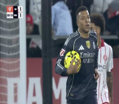 西甲第14輪,皇家馬德里客場對陣赫羅納,下半場姆巴佩主罰點球破門,至此,姆巴佩本賽季各項賽事已打入7粒點球,為五...